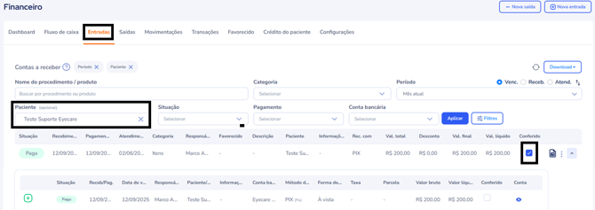 - Encontre a conta desejada e marque a caixa ao lado dela para confirmar que a conferência foi realizada.