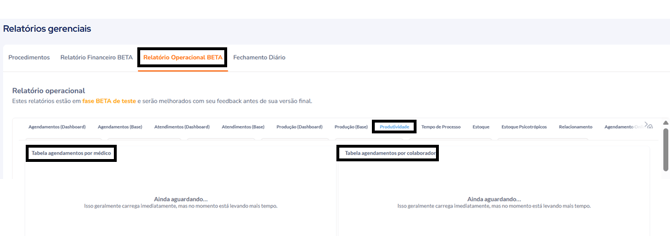 - Selecione o relatório operacional BETA e vá para a opção "produtividade".