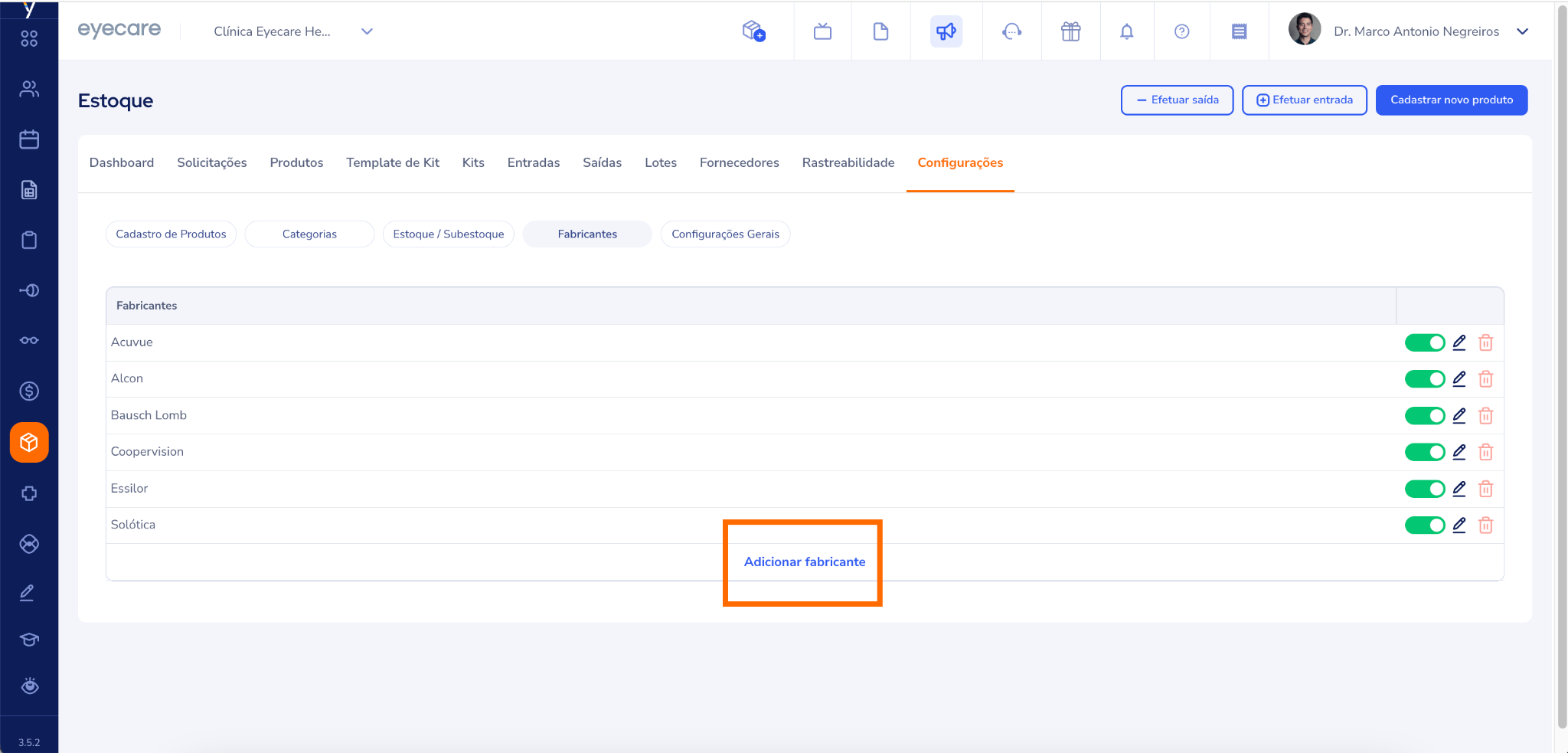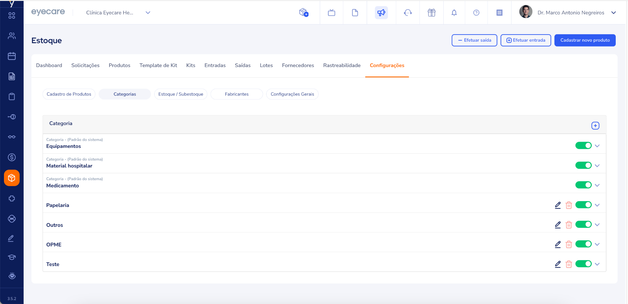Dica: o sistema já entrega categorias, classes e subclasses padrões que foram extraídas diretamente da realidade de clínicas e hospitais de oftalmologia. Antes de criar novas, explore as presentes no sistema, isso poderá economizar seu tempo!